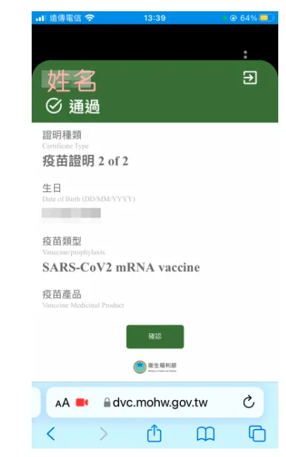 - 在國外接種之 COVID-19 疫苗劑次不納入本數位健康證明。
