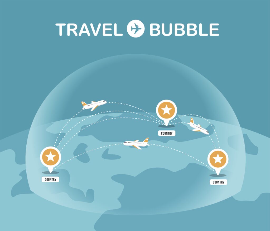 旅遊泡泡即國與國之間達成協議,在疫情期間,旅客可以前往當地以有條件的方式進行旅遊,如:入境免隔離免採檢、僅能入住當地認可安全防疫飯店…等等。旅遊泡泡的成立不僅能一解大家想出國玩的心還能兼打疫苗,台灣首度旅遊泡泡為友邦國帛琉,在 8 月 14 日重啟後,相關規定也比之前鬆綁許多,而關島觀光局也推出 AIR V&V 企劃,開放 12 歲(含)以上的旅客前往關島施打疫苗兼旅遊。
