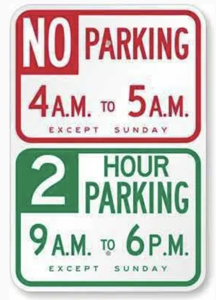 美國的停車標誌都會直接寫在標示牌上,能夠很快速的理解,以下介紹幾個常見的停車標誌: