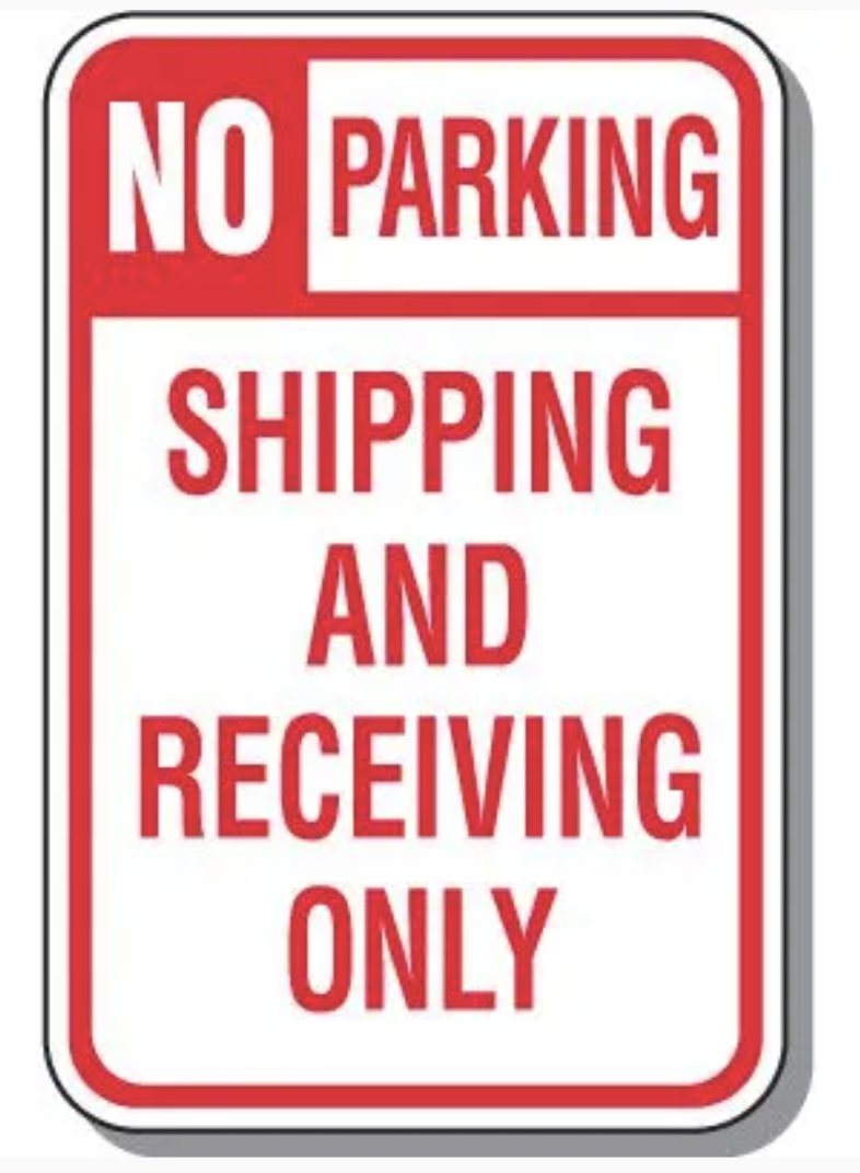 - 限制用途的停車標示:下圖表示此路段禁止停車,僅可運送和收貨。