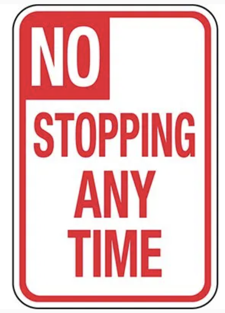 - 全時段都禁止的停車標示:下圖表示該路段於任何時候都不能停車。