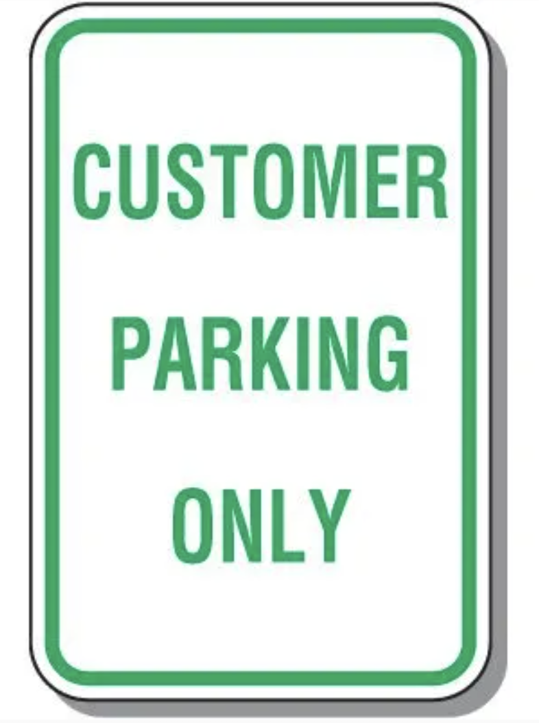 - 顧客專屬停車位(Customer Parking Only):大多會在從事商業活動的地區看到顧客專屬停車位,如:超市、餐廳、百貨公司等,在這些地方都是可以免費停放的,惟消費完後,不能夠長時間停放,尤其不能把車輛放過夜,因為定期會有停車場人員來巡視或是遭他人檢舉。