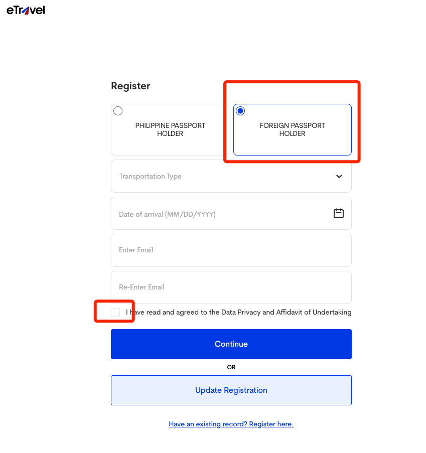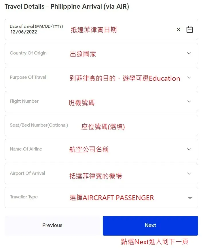 1. 務必在登機出發到菲律賓前五天內點擊註冊,依順序填寫個人資料。
