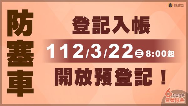 財政部與數位部在 2023 年 3 月 16 日宣布,將於 3 月 22 日上午 8 時起提供網站預約登記服務,財政部說明,原則上今年 10 月 31 日前符合發放資格者均可領,但仍須待特別預算三讀經總統公布生效確定,每人均得領取 6 千元。目前規劃發放方式採「登記入帳」、「 ATM 領現」、「郵局領現」、「直接入帳」及「造冊發放」5 種方式,避免人潮擠爆郵局或是 ATM,民眾可選擇適合自己的方式領取。