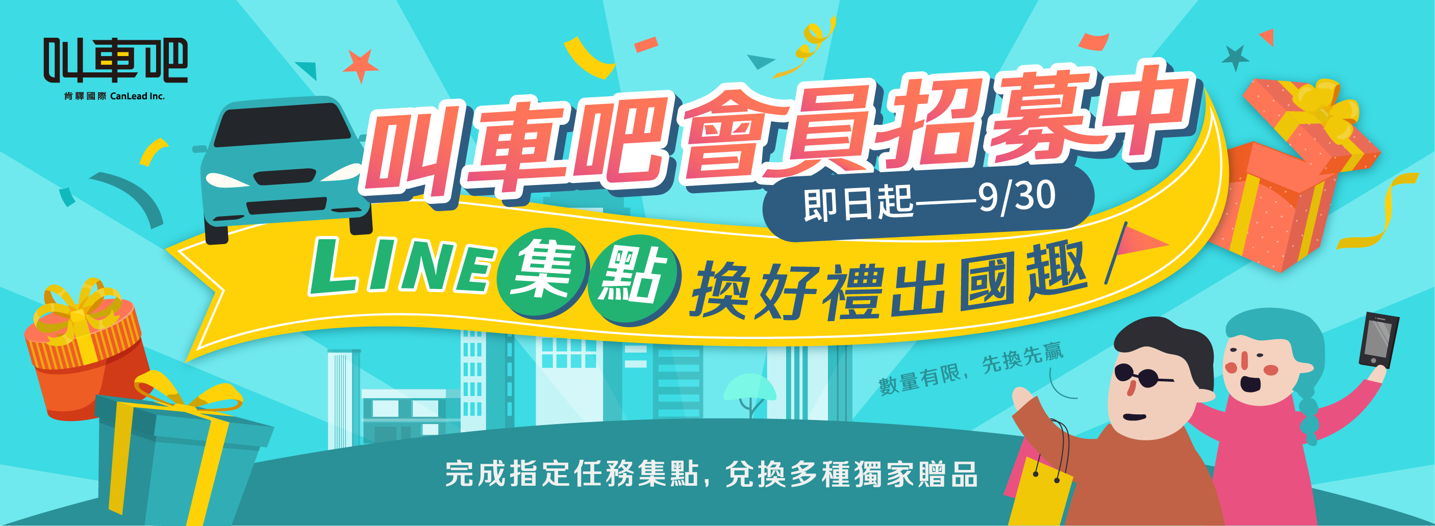 即日起至 09/30,加入叫車吧 Line 好友並完成指定任務,輕鬆集點享受豐富好禮!