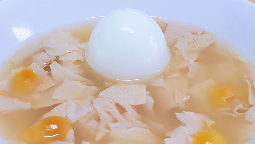 腐竹雞蛋糖水是經典的廣東糖水之一,清香嫩滑、口感軟綿又滋潤。不過這道甜品有兩種不同的做法,一種像「豆漿」一樣,腐竹完全溶化在糖水裡,另一種則保留了一片片的腐竹,適合喜歡有點嚼勁的人。通常這款糖水裡還會加入銀杏和薏米,增添口感和營養,有些人還會再搭配一顆煮雞蛋一起享用,風味更加豐富。
