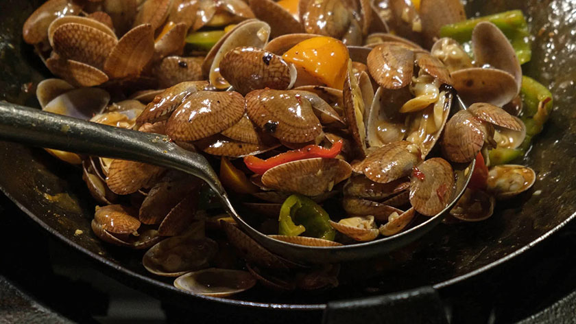 說到大排檔,不能不提「鑊氣」— 也就是鍋氣。火力夠猛,才能把食材的香氣和味道鎖住,讓味道更濃。特別是「豉椒炒蜆」這道功夫菜,蜆殼要清洗得很乾淨,炒的時候殼才不能破壞鍋氣,所以吃上一口就能知道這家大排檔到底厲不厲害!