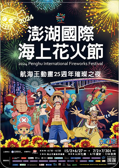 如今,花火節已成國際級盛事,不僅加入「世界最美麗海灣」組織,以及入選「臺灣觀光年曆」。近年更與 MARVEL、LINE FRIENDS、迪士尼、航海王等人氣 IP 聯名,每年推出全新主題,讓澎湖花火節更有話題性,直接成為澎湖的最強品牌!!