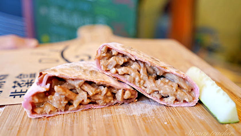 一般吃韭菜盒,紙袋常常油得透亮,但楊媽媽韭菜盒可不一樣!他們家的餅皮採用無油乾烙,薄而有嚼勁,越嚼越能感受到麵粉的自然香氣。最受大家推薦的口味「京醬肉絲」,餡料飽滿紮實,滑順的口感帶些許豆腐乳與花生醬香,搭配上清脆的小黃瓜,還多了點清爽平衡。而且,只要加價 5 元,就能試試夢幻粉色的仙人掌餅皮,Q 彈帶勁,帶著微酸微甜的仙人掌果香!