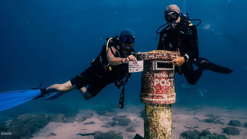 來澎湖浮潛除了欣賞海底生物,還能把回憶「寄」回家。在鎖港杭灣的6米深海底,藏著全台第一座「海底郵筒」,不只是信箱,還肩負著人工魚礁與珊瑚復育的使命。換上裝備一躍入海,手寫明信片,親手投進這座深藍世界裡最獨特的信箱,讓整片海洋當你的郵差,把祝福送往遠方。這不只是寄信,更是一場和大海的浪漫對話,為旅程留下最難忘的印記。