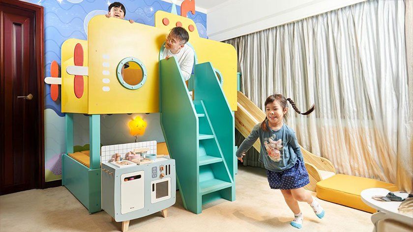 台北福華大飯店推出多款溫馨親子主題套房,部分房型內設溜滑梯與扮家家酒廚房,並貼心備妥兒童專用洗漱用品。家長可提前預約嬰兒床、澡盆和奶瓶消毒鍋等嬰幼兒備品,讓帶小小孩的家庭也能輕鬆入住無憂。為豐富孩子的住店體驗,飯店於特定節日舉辦兒童彩繪活動,並在兒童休憩室提供親子共讀書籍與桌遊。此外,住客可免費體驗 VR 虛擬實境樂趣,或前往兒童電影院欣賞適合全家觀賞的影片。飯店公共空間全天候供應零食、泡麵及飲料吧,更有免費嬰兒床服務,充分展現對親子家庭的貼心關懷。