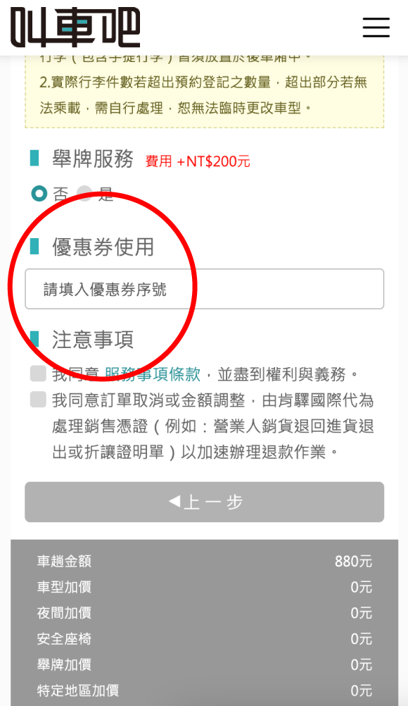- 使用方式:於叫車吧官網點擊【會員專區】-【我的優惠券】,輸入優惠序號後,即可儲存該序號於叫車吧會員專區,預約【機場接送】可折抵 300 元。